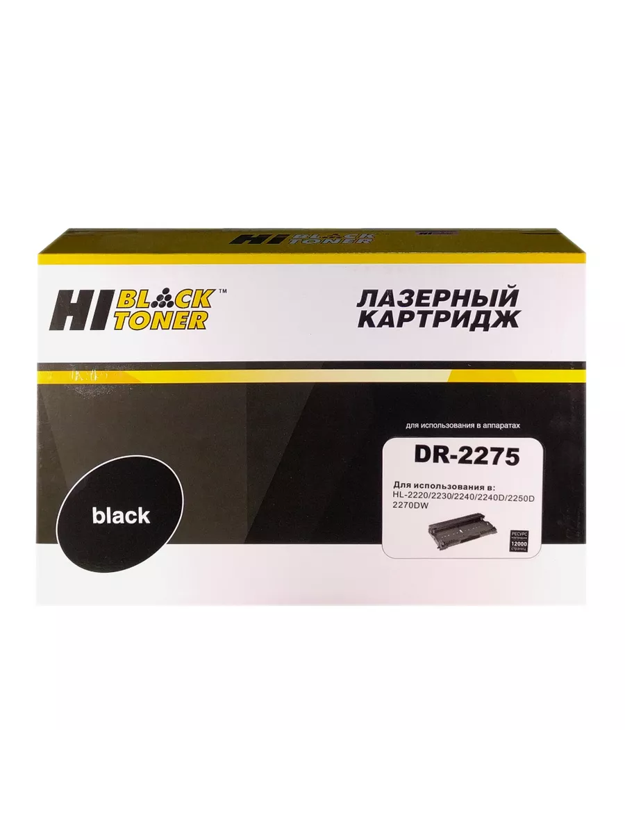 Драм-картридж Hi-Black (DR-2275) для монохромных лазерных принтеров и МФУ Brother. Ресурс составляет 12000 копий при 5% заполнении листа (данный показатель может изменяться в виду особенностей тех или иных настроек, выставляемых при печати).