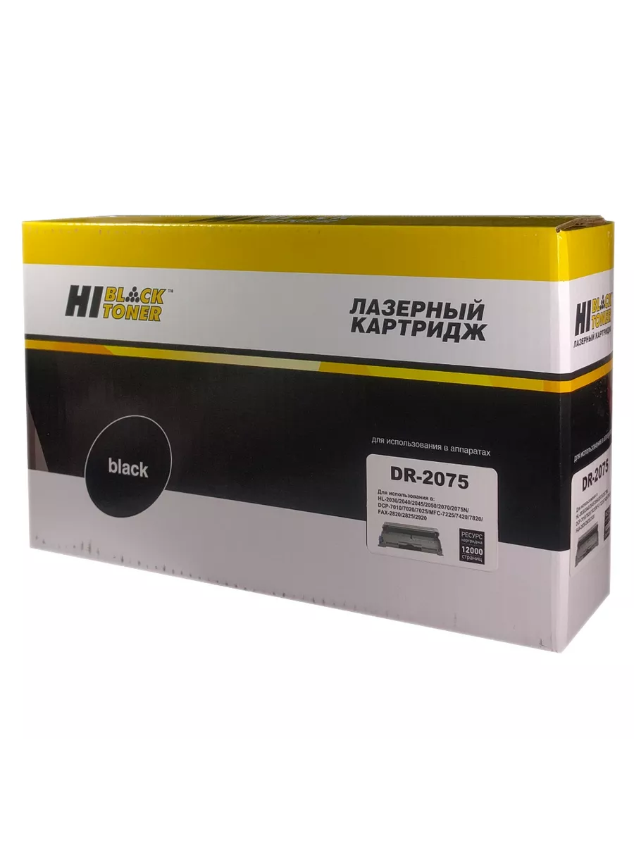Драм-картридж Hi-Black (DR-2075) для монохромных лазерных принтеров и МФУ Brother. Ресурс составляет 12000 копий при 5% заполнении листа (данный показатель может изменяться в виду особенностей тех или иных настроек, выставляемых при печати).