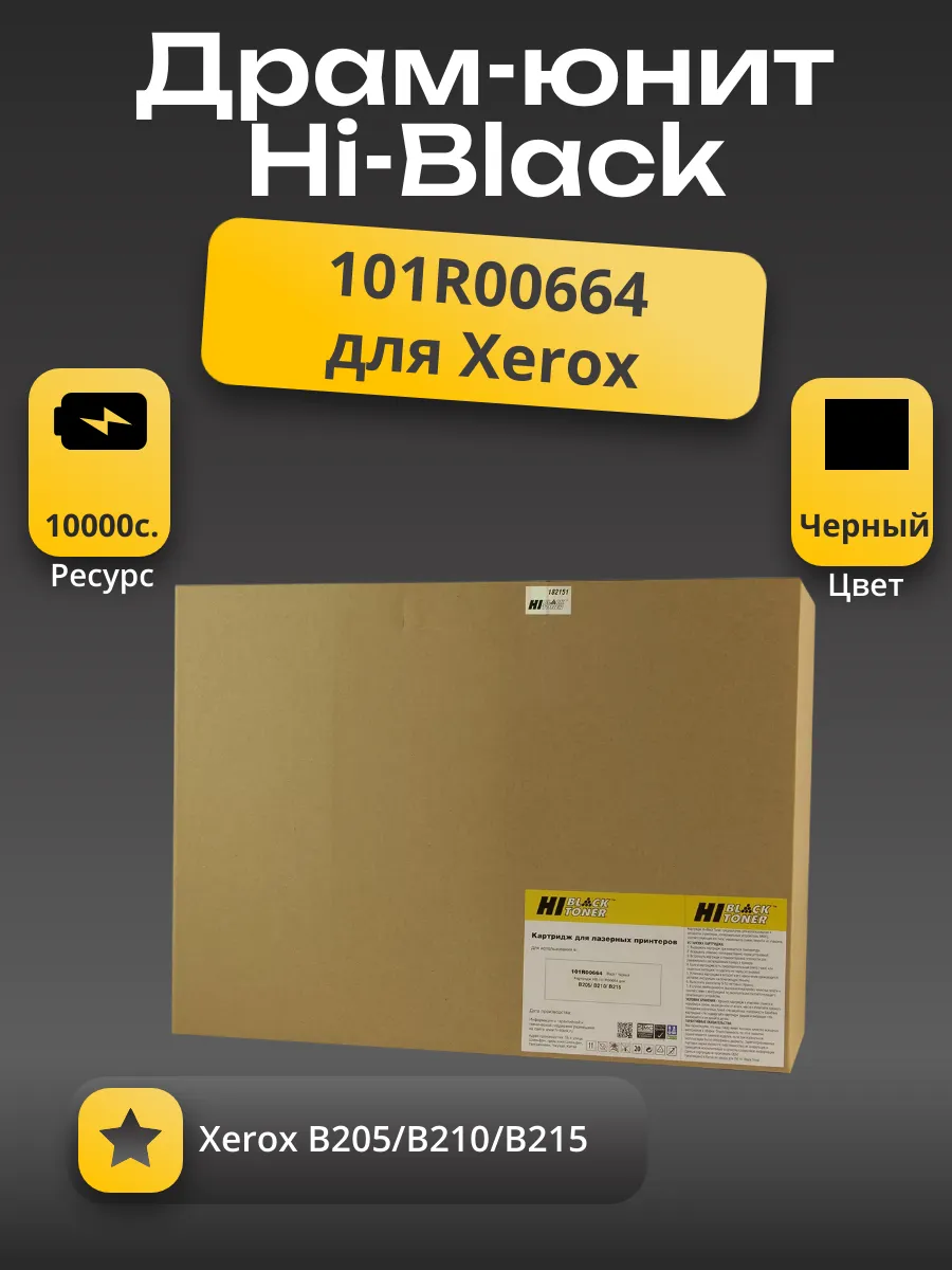 Драм-картридж Hi-Black (101R00664) для монохромных лазерных принтеров и МФУ Xerox. Ресурс составляет 10000 копий при 5% заполнении листа (данный показатель может изменяться в виду особенностей тех или иных настроек, выставляемых при печати).