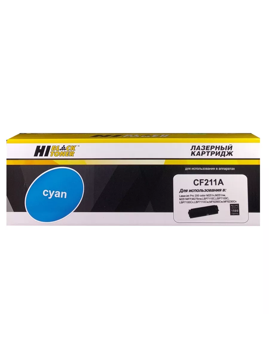 Картридж Hi-Black (CF211A) для цветных лазерных принтеров и МФУ HP. Ресурс составляет 1800 копий при 5% заполнении листа (данный показатель может изменяться в виду особенностей тех или иных настроек, выставляемых при печати).
