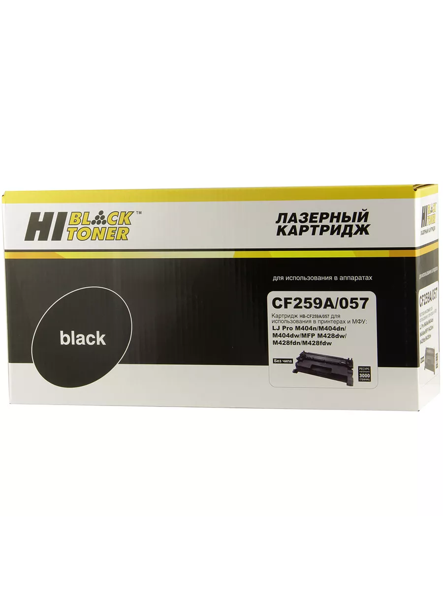 Картридж Hi-Black (CF259A, 057) для лазерных принтеров и МФУ HP. Ресурс составляет 3000 копий при 5% заполнении листа (данный показатель может изменяться в виду особенностей тех или иных настроек, выставляемых при печати).