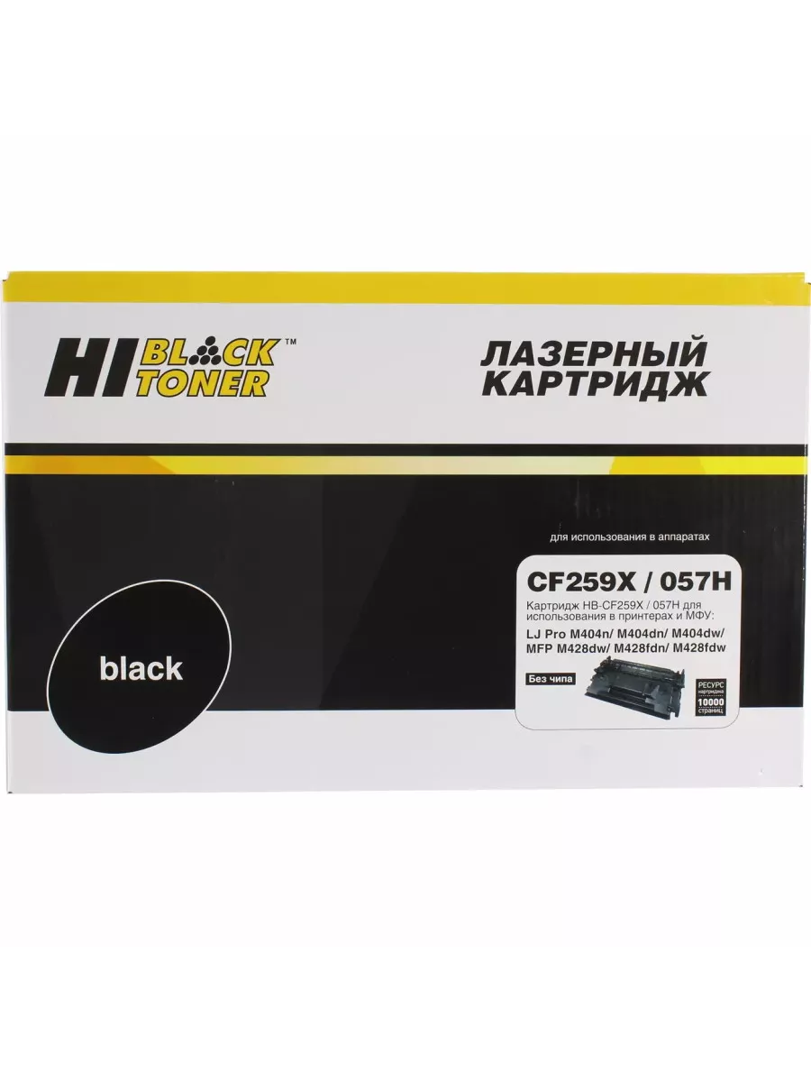 Картридж Hi-Black (CF259X, 057H) увеличенной ёмкости для лазерных принтеров и МФУ HP. Ресурс составляет 10000 копий при 5% заполнении листа (данный показатель может изменяться в виду особенностей тех или иных настроек, выставляемых при печати).