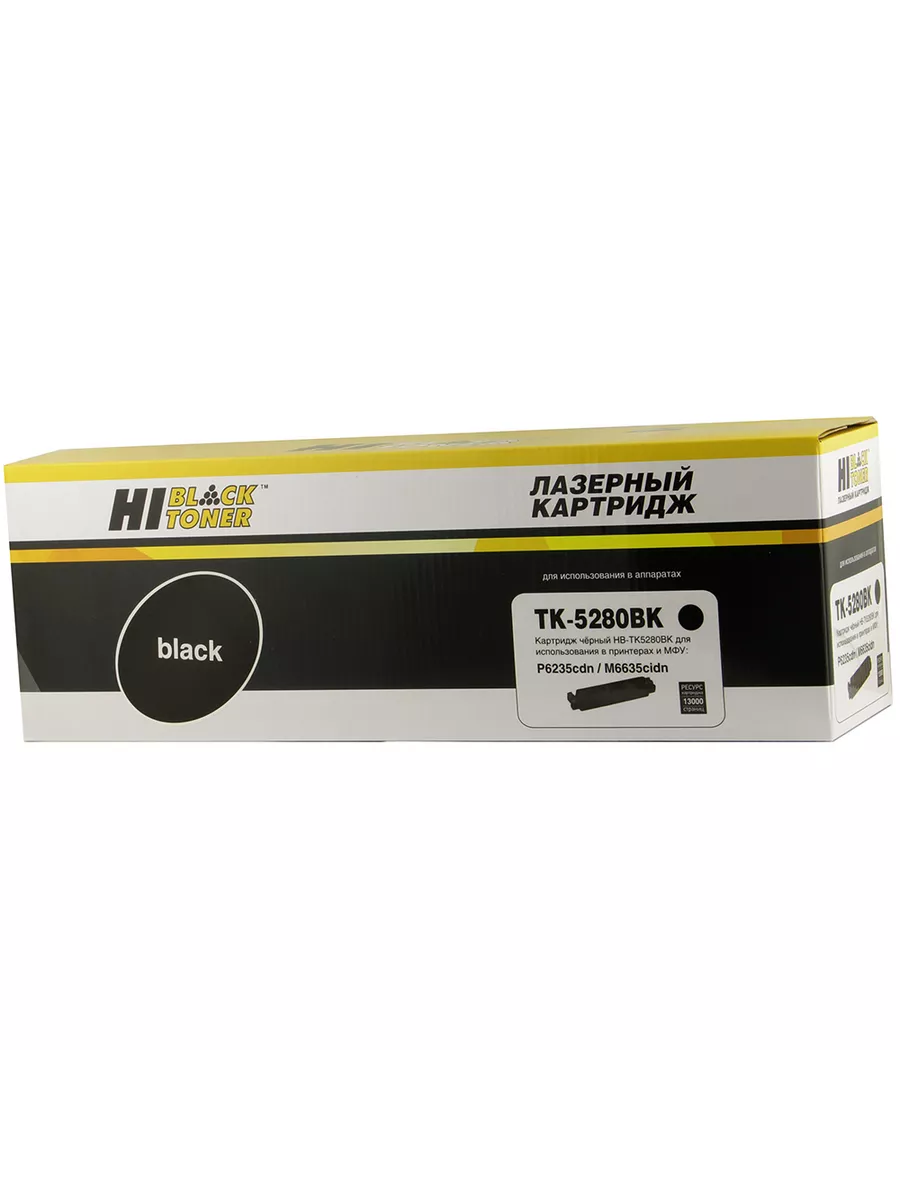 Тонер-картридж Hi-Black (TK-5280K) для цветных лазерных принтеров и МФУ Kyocera. Ресурс составляет 11000 копий при 5% заполнении листа (данный показатель может изменяться в виду особенностей тех или иных настроек, выставляемых при печати).