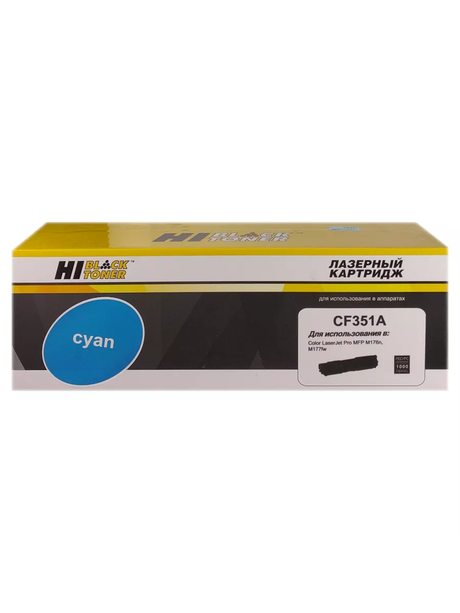 Тонер-картридж Hi-Black (CF351A) для цветных лазерных принтеров и МФУ HP. Ресурс составляет 1000 копий при 5% заполнении листа (данный показатель может изменяться в виду особенностей тех или иных настроек, выставляемых при печати).