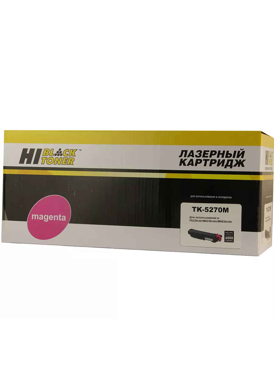 Тонер-картридж Hi-Black (TK-5270M) для цветных лазерных принтеров и МФУ Kyocera. Ресурс составляет 6000 копий при 5% заполнении листа (данный показатель может изменяться в виду особенностей тех или иных настроек, выставляемых при печати).