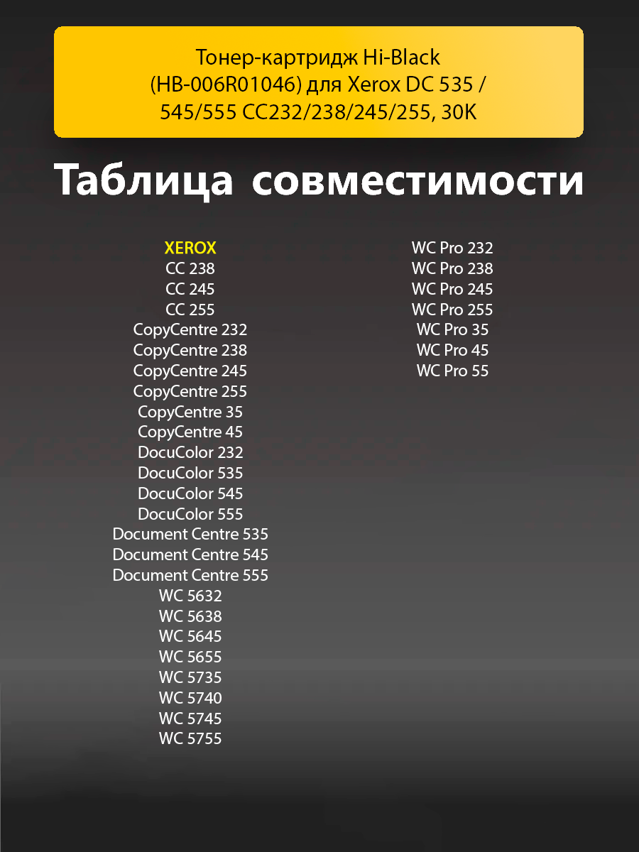 Тонер-картридж Hi-Black (HB-006R01046) для Xerox DC 535/545/555 CC232/238/245/255, 30K