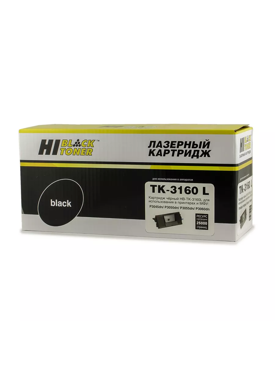 Тонер-картридж Hi-Black (TK-3160L) увеличенной ёмкости для лазерных принтеров и МФУ Kyocera. Ресурс составляет 25000 копий при 5% заполнении листа (данный показатель может изменяться в виду особенностей тех или иных настроек, выставляемых при печати).