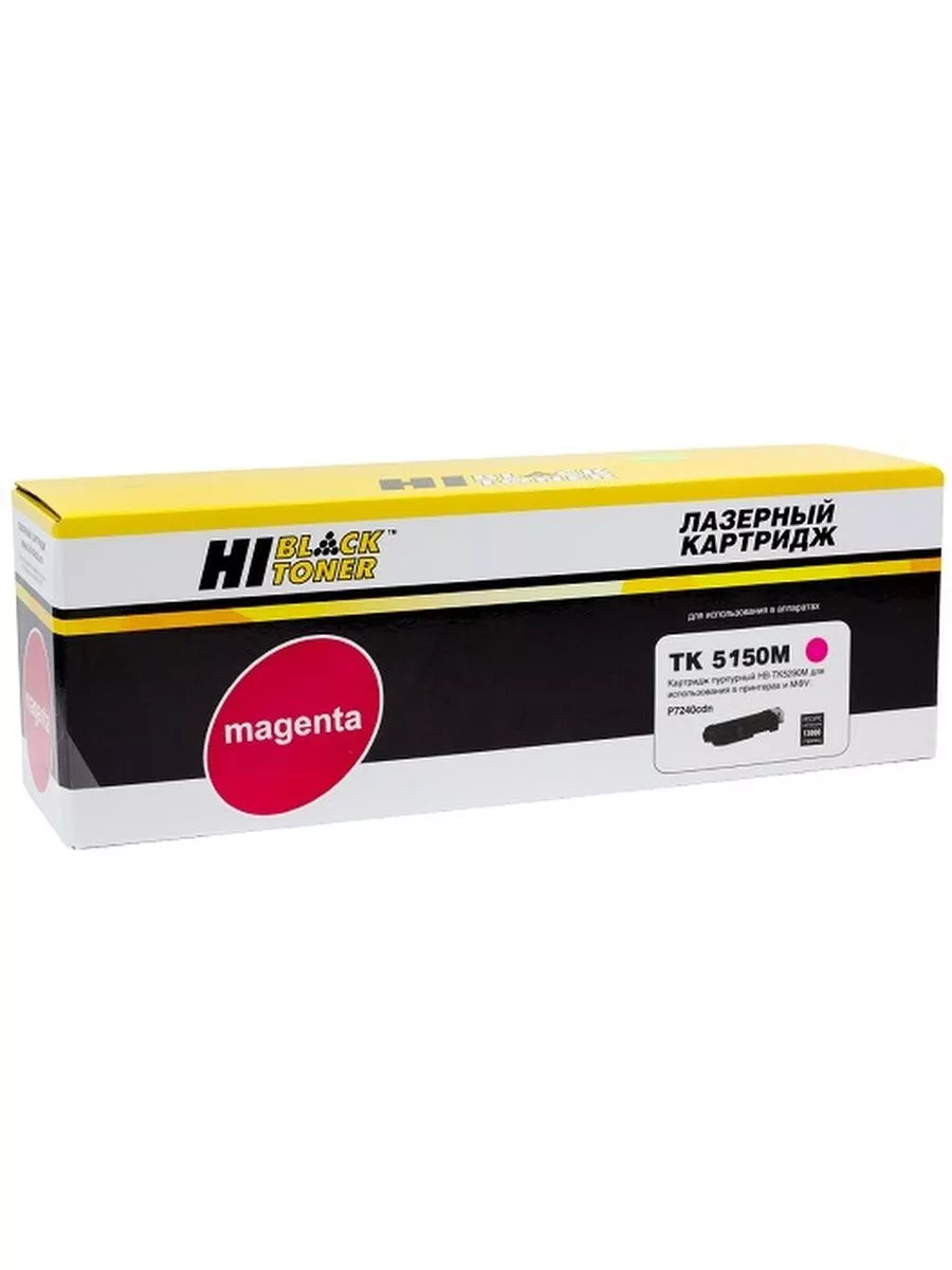 Тонер-картридж Hi-Black (TK-5150M) для цветных лазерных принтеров и МФУ Kyocera. Ресурс составляет 10000 копий при 5% заполнении листа (данный показатель может изменяться в виду особенностей тех или иных настроек, выставляемых при печати).