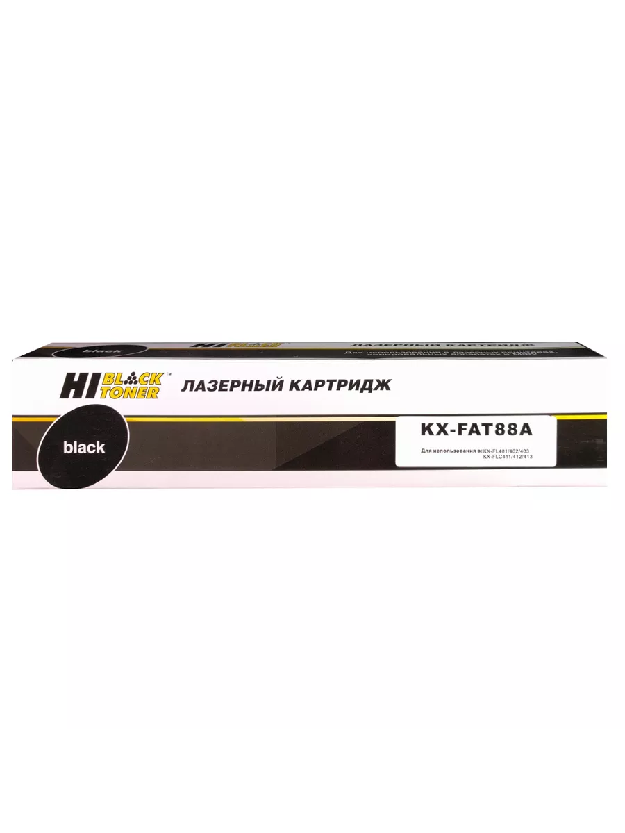 Тонер-картридж Hi-Black (KX-FAT88A) для копировальных аппаратов и МФУ Panasonic. Ресурс составляет 2000 копий при 5% заполнении листа (данный показатель может изменяться в виду особенностей тех или иных настроек, выставляемых при печати).