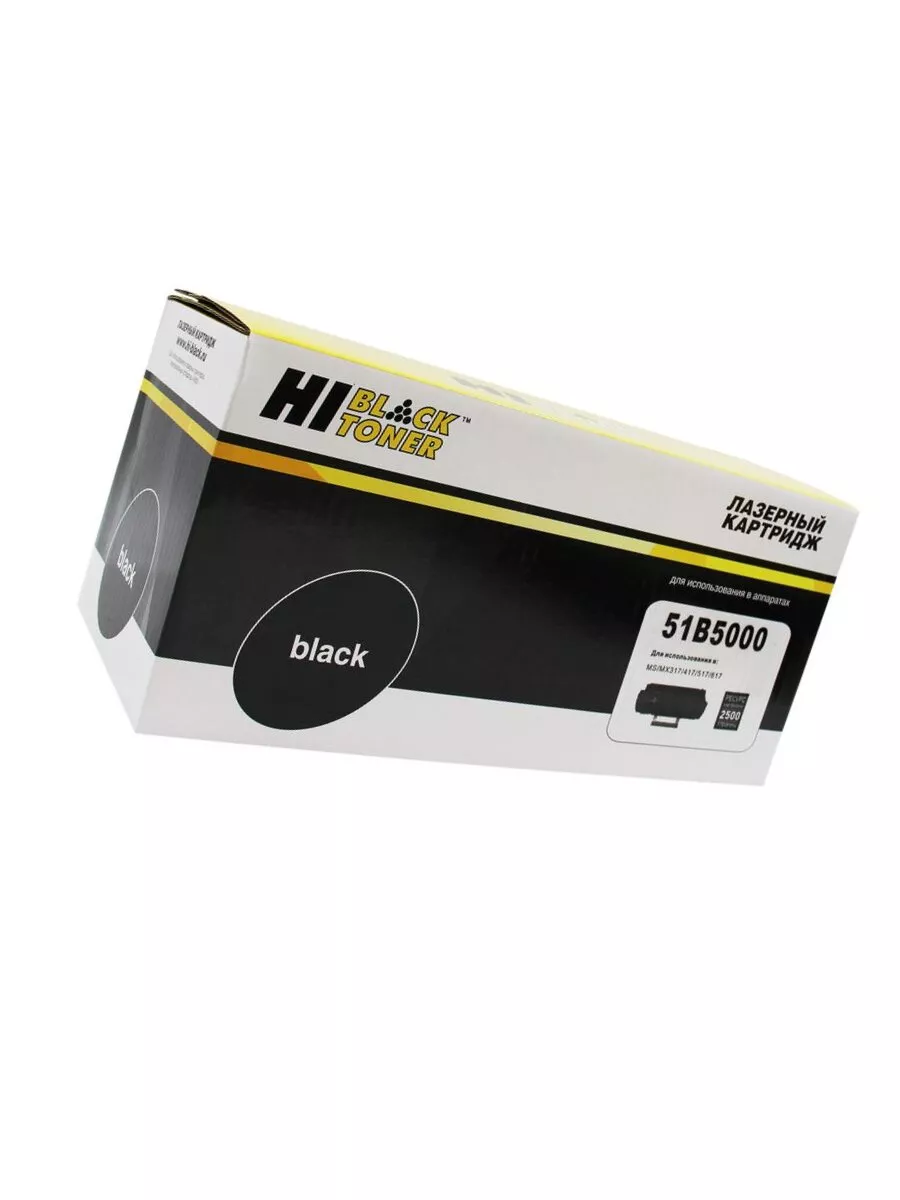 Тонер-картридж Hi-Black (51B5000) для лазерных принтеров и МФУ Lexmark. Ресурс составляет 2500 копий при 5% заполнении листа (данный показатель может изменяться в виду особенностей тех или иных настроек, выставляемых при печати).