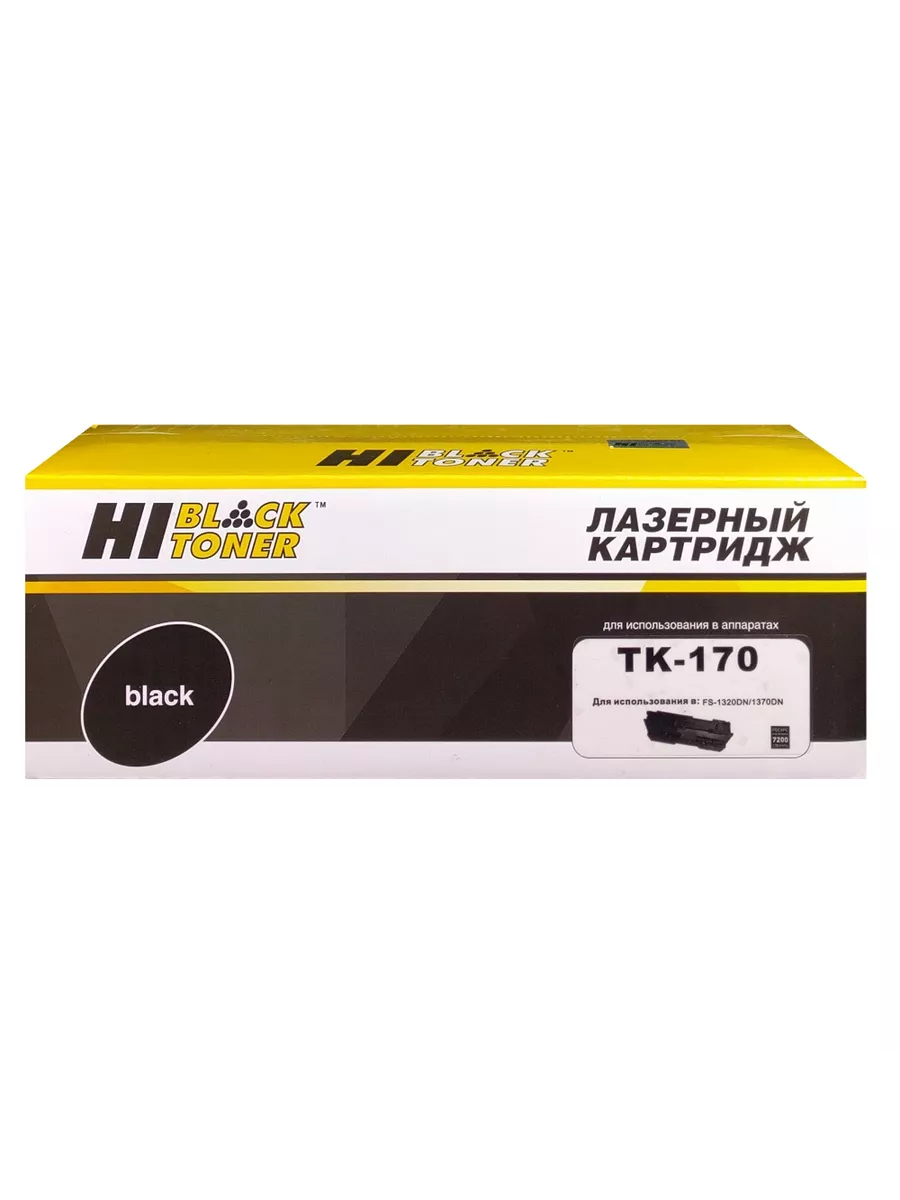 Тонер-картридж Hi-Black (TK-170) для лазерных принтеров и МФУ Kyocera. Ресурс составляет 7200 копий при 5% заполнении листа (данный показатель может изменяться в виду особенностей тех или иных настроек, выставляемых при печати).