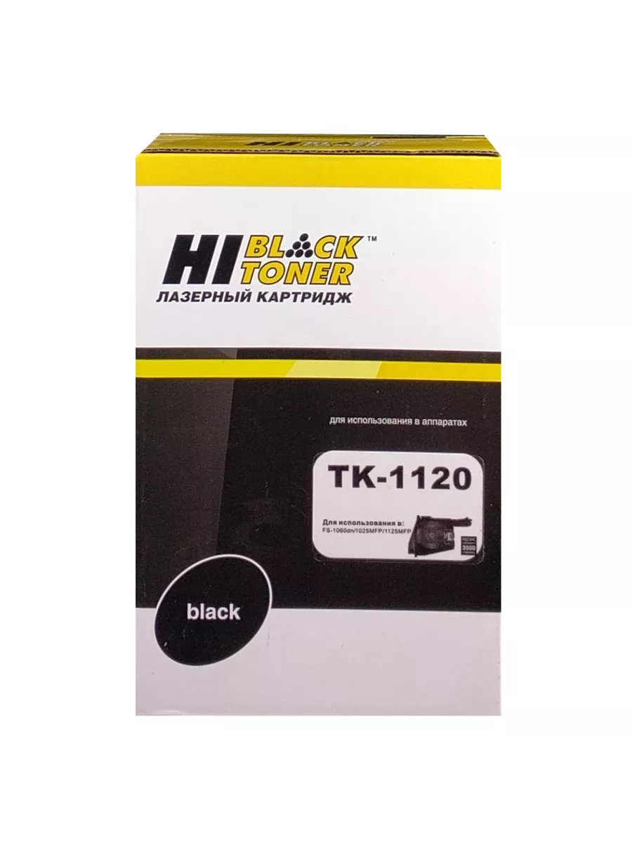 Тонер-картридж Hi-Black (TK-1120) для лазерных принтеров и МФУ Kyocera. Ресурс составляет 3000 копий при 5% заполнении листа (данный показатель может изменяться в виду особенностей тех или иных настроек, выставляемых при печати).