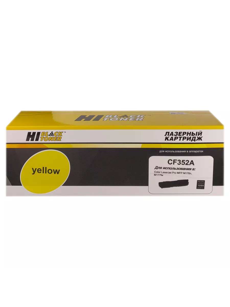 Тонер-картридж Hi-Black (CF352A) для цветных лазерных принтеров и МФУ HP. Ресурс составляет 1000 копий при 5% заполнении листа (данный показатель может изменяться в виду особенностей тех или иных настроек, выставляемых при печати).