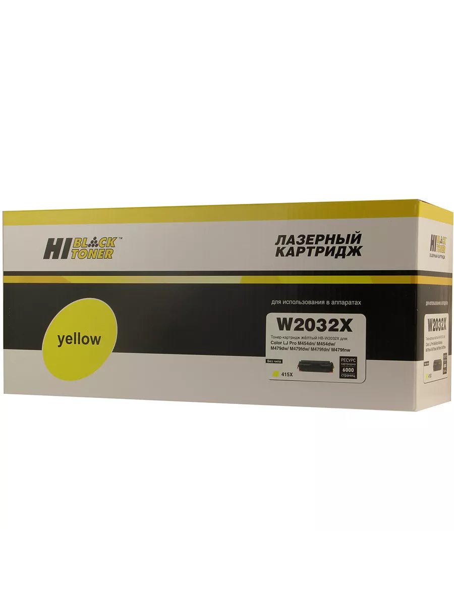 Тонер-картридж Hi-Black (HB-W2032X) для HP Color LaserJet Pro M454dn/M479dw, №415X, Y, 6K б/ч