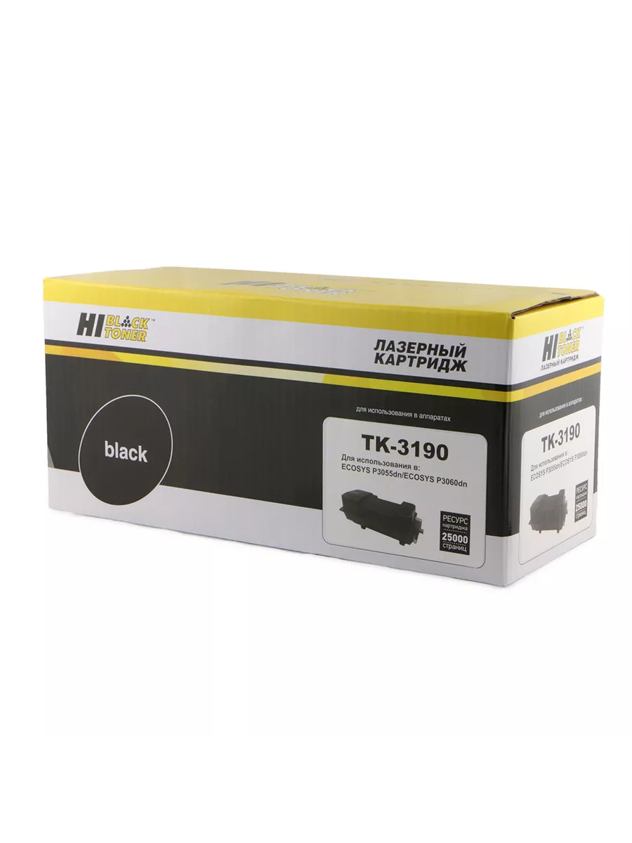 Тонер-картридж Hi-Black (TK-3190) для лазерных принтеров и МФУ Kyocera. Ресурс составляет 25000 копий при 5% заполнении листа (данный показатель может изменяться в виду особенностей тех или иных настроек, выставляемых при печати).