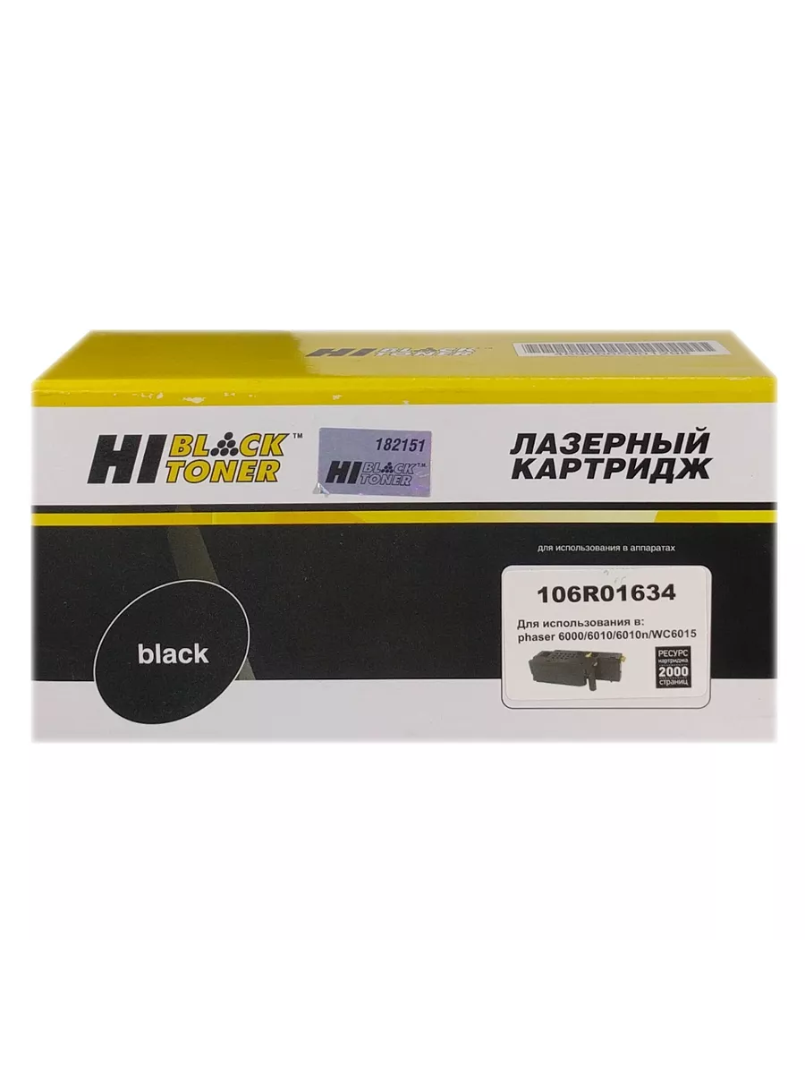 Тонер-картридж Hi-Black (106R01634) для цветных лазерных принтеров и МФУ Xerox. Ресурс составляет 2000 копий при 5% заполнении листа (данный показатель может изменяться в виду особенностей тех или иных настроек, выставляемых при печати).