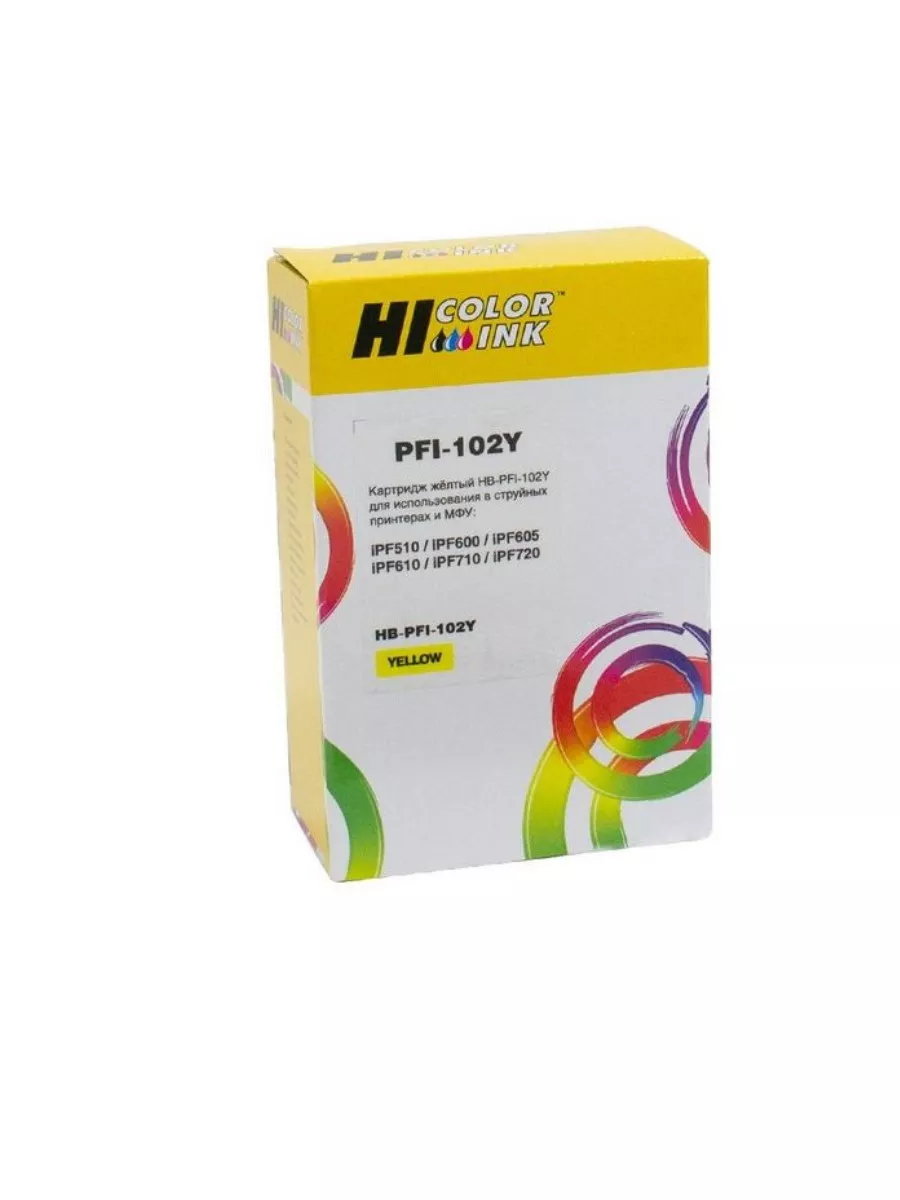 Струйный картридж Hi-Black (PFI-102Y) для цветных принтеров и МФУ Canon. Объем чернил: 130 мл.