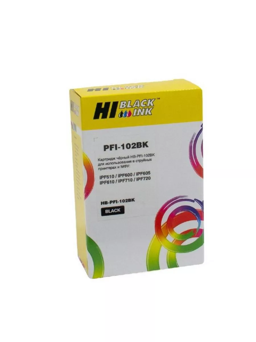 Струйный картридж Hi-Black (PFI-102BK) для цветных принтеров и МФУ Canon. Объем чернил: 130 мл.