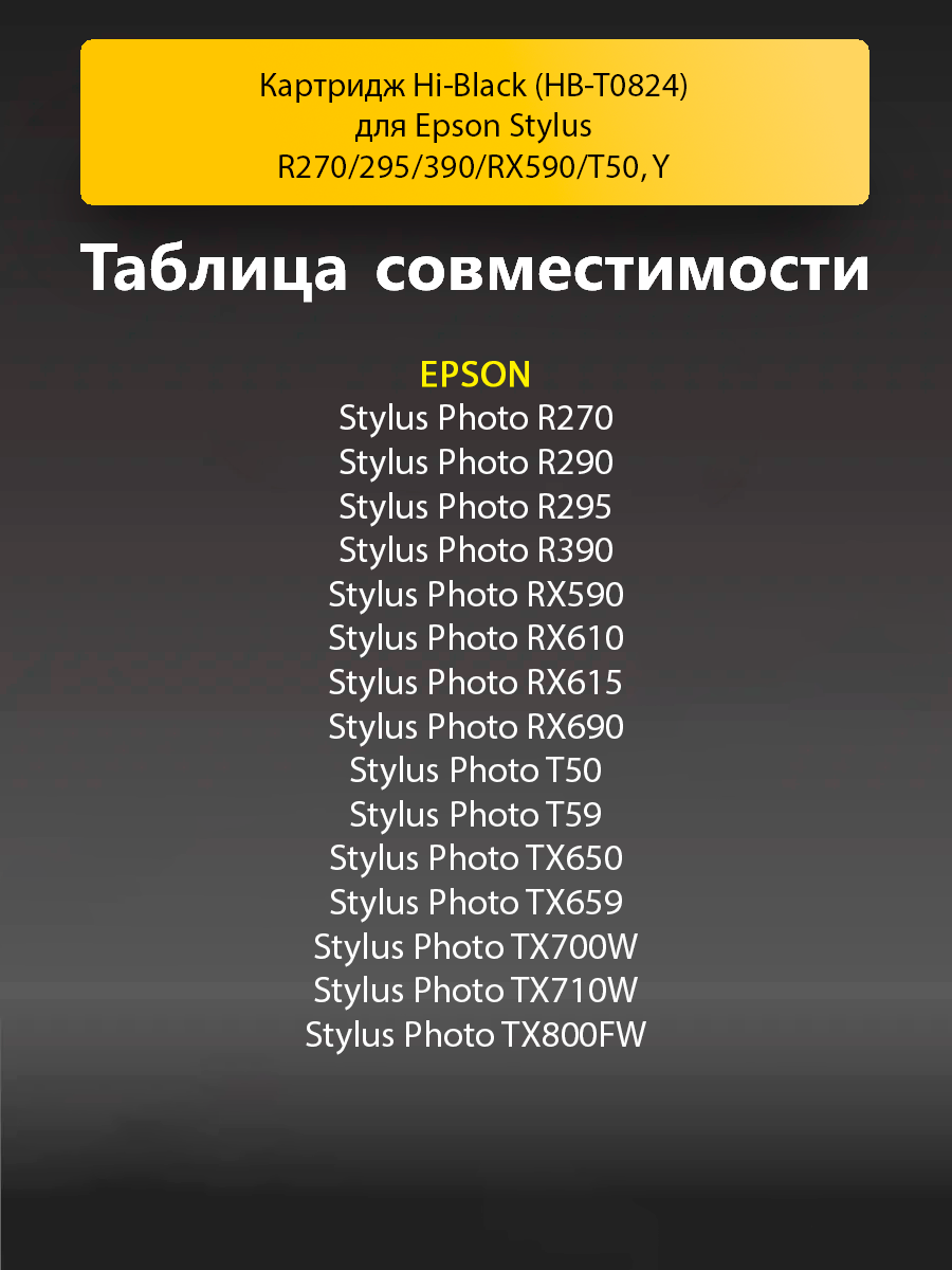 Картридж Hi-Black (HB-T0824) для Epson Stylus R270/295/390/RX590/T50, Y