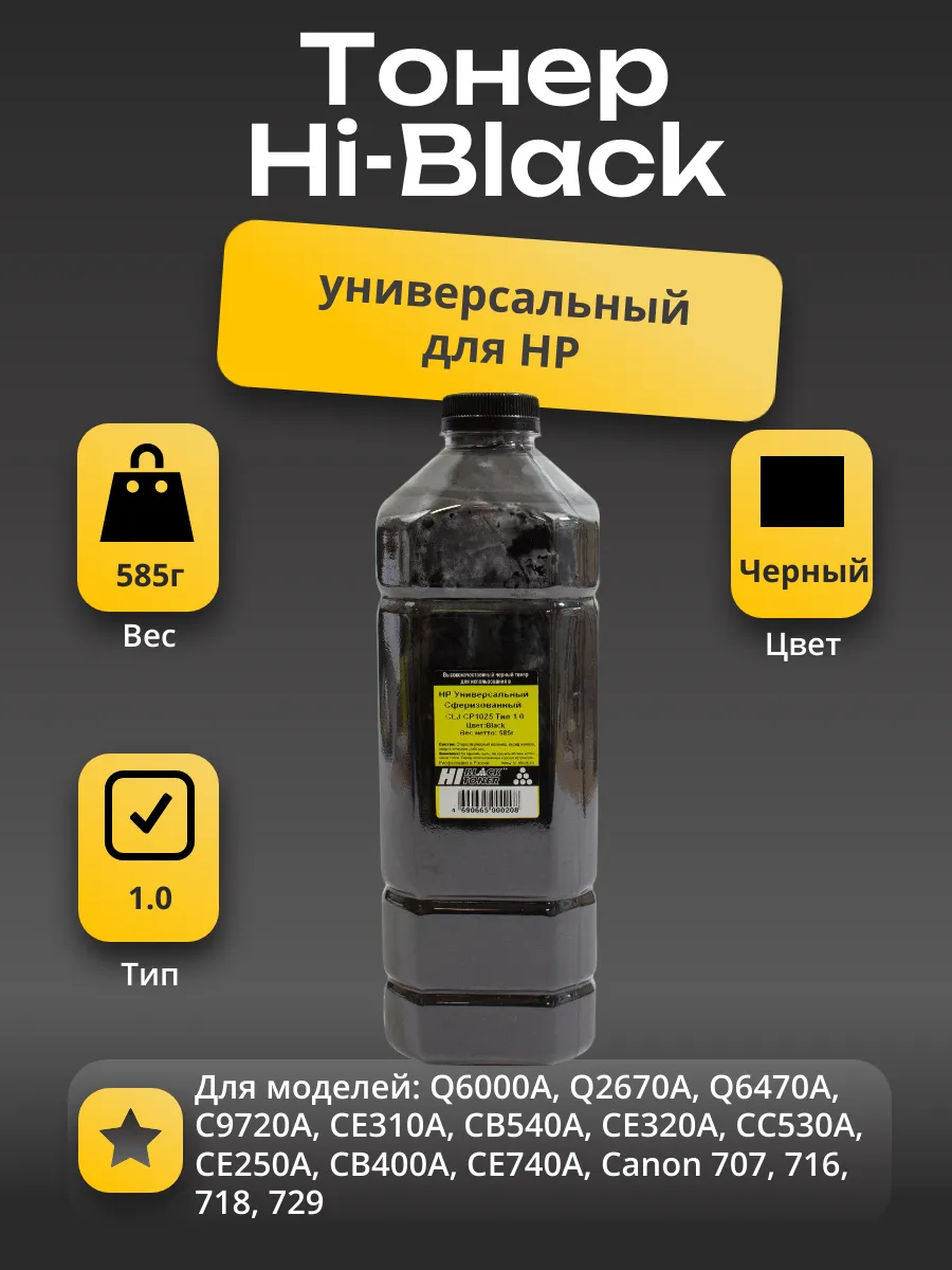 Тонер Hi-Black Универсальный для HP CLJ CP1025, Сферизованный, Тип 1.0, Bk, 585г, канистра